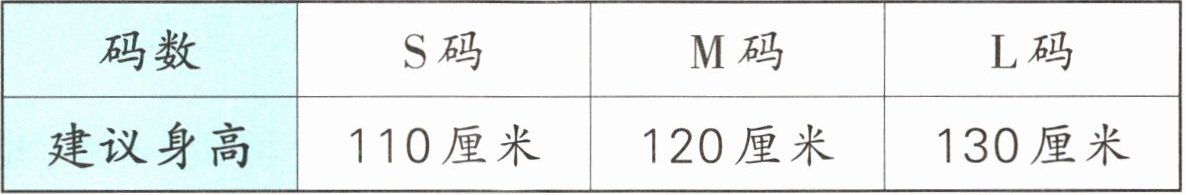 3. [新情境·生活运用]买新校服。倩倩的身高是1米26厘米,她买一套()码的校服最合适。