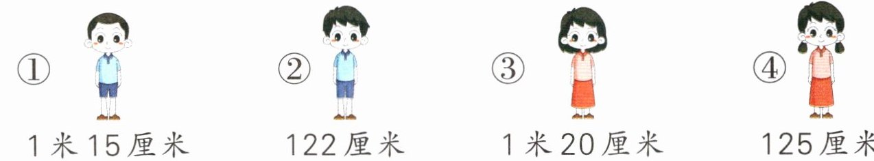 )码的校服最合适。4. (易错题)体育课排队列。下面4名同学中,()的身高最高,将下面4名同学按身高从矮到高的顺序排成一行是()。(填序号)