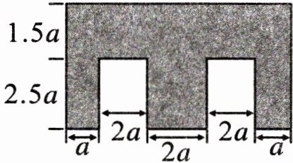 【解析】:将阴影部分看作一个大长方形减去两个小长方形,大长方形的长为$(a + 2a + 2a + 2a + a)$,宽为$(2.5a + 1.5a)$,根据长方形面积公式$S = 长×宽$,可得大长方形面积为$(2.5a + 1.5a)(a + 2a + 2a + 2a + a)$;小长方形的长为$2a$,宽为$2.5a$,两个小长方形面积为$2×2.5a×2a$,则阴影部分面积为大长方形面积减去两个小长方形面积。
