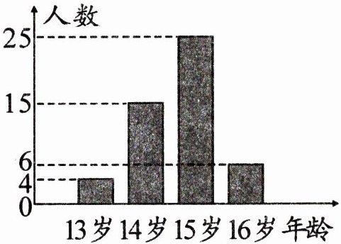 8. 如图所示的是某班学生年龄的频数分布直方图,根据图中提供的信息,求出该班学生年龄的众数、平均数,并画出该班学生年龄的扇形统计图。