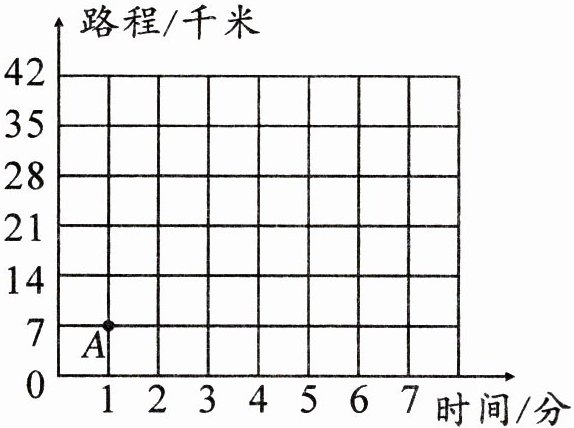 (1) 图中的点 $ A $ 表示时间为 1 分钟时,磁悬浮列车驶过的路程为 7 千米。请你试着描出其他各点。