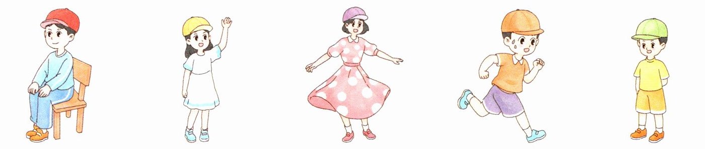[新情境] Miss White 和同学们在玩根据帽子颜色做动作的游戏。听录音,判断同学们做的动作是(T)否(F)正确。(听两遍)