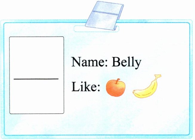 [新情境] Belly 去新学校,拥有了属于自己的学生证。听录音,选出 Belly 学生证上的照片,并填写在横线上。(听两遍)