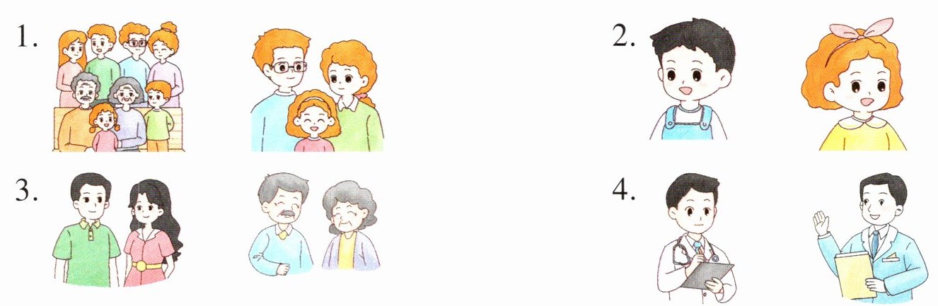 [新题型] 听录音,将家庭成员的姓名所对应的序号填入方框中。(听两遍)