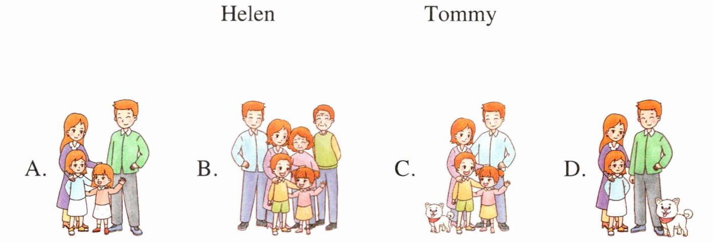 一、听录音,选出 Helen 和 Tommy 的全家福,将人物和他们的全家福连线。(听两遍)