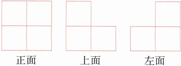 明明用一些棱长为1 cm的小正方体搭建成一个几何体,从三个角度观察几何体所得的图形如图,那么这个几何体的体积是$( )cm^3。$