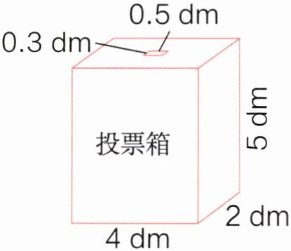 3. 六(1)班要评选红领巾文明小先锋,班主任设计了一个长方体投票箱,在投票箱上挖了一个投票口,如图,现要在投票箱的上面及四周贴上红纸,至少要多少平方分米的红纸?(接头处忽略不计)