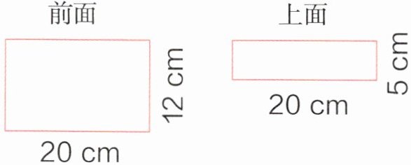 长:20 cm 宽:5 cm 高:12 cm表面积:$(20×5+20×12+5×12)×2=800$($cm^2$)