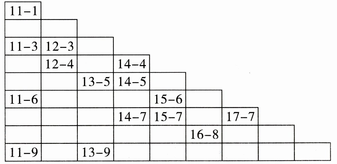 第七行:$\boldsymbol{11 - 8}$、$\boldsymbol{12 - 8}$、$\boldsymbol{13 - 8}$、$\boldsymbol{14 - 8}$、$\boldsymbol{15 - 8}$、$\boldsymbol{17 - 8}$