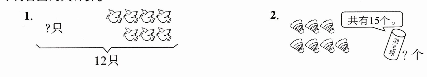 1. $12 - 7 = 5$(只) 2. $15 - 7 = 8$(个)