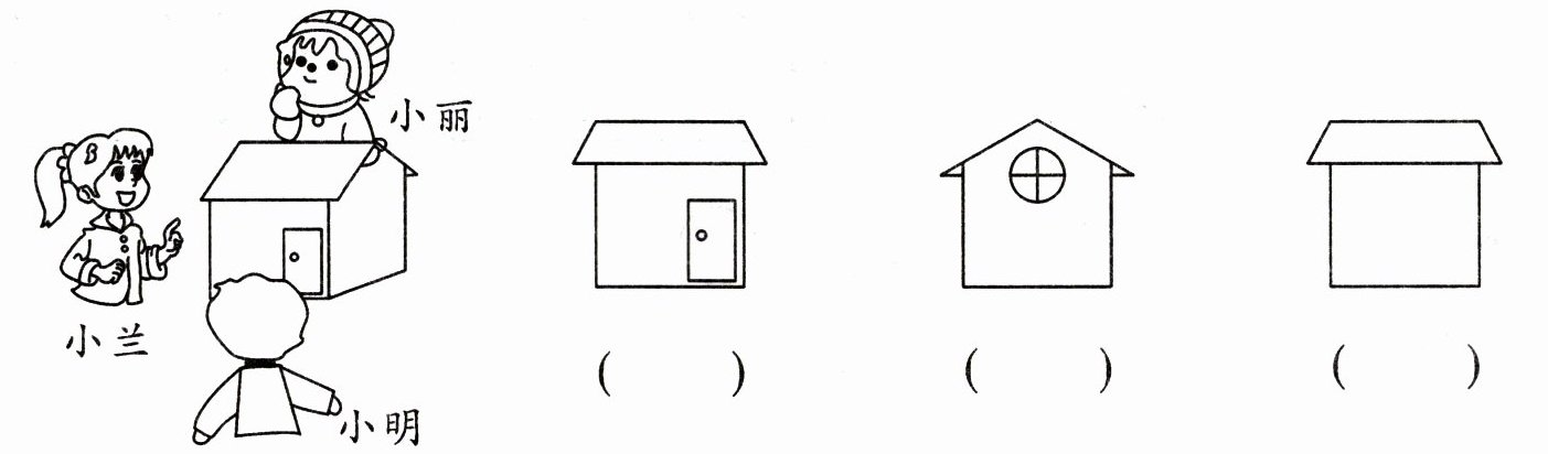 4. 请说出下面三张图片分别是谁看到的?把他们的名字写在括号里。