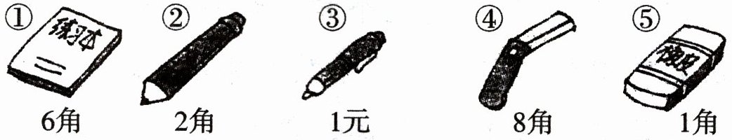 ③圆珠笔(单独$1$元);也可以圈②铅笔和④小刀($2 + 8 = 10$角$ = 1$元)
