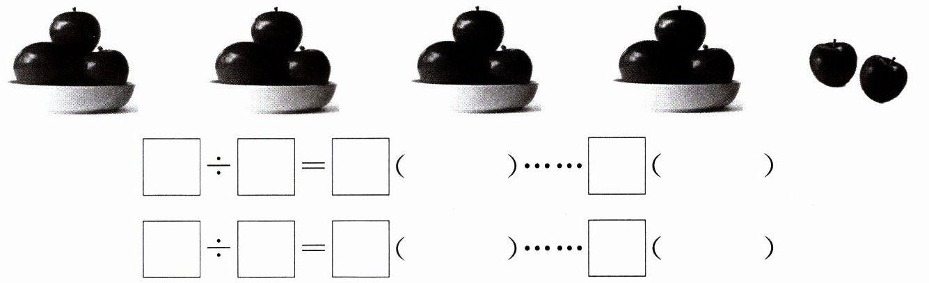 $14÷3=4$(盘)……2(个) $14÷4=3$(个)……2(个)
