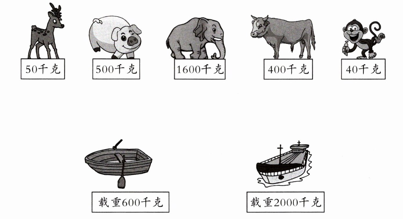 【解析】:先计算动物体重组合,小船载重$600$千克,大船载重$2000$千克。