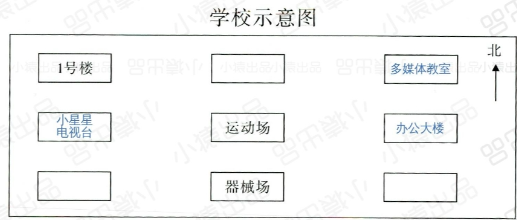 1. 按要求将下列“名称”写在学校示意图中合适的地方。