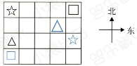 ☆先向东面跳 2 格,再向东南方向跳 2 格;□先向西南方向跳 3 格,再向西面跳 1 格;△先向东面跳 2 格,再向东北方向跳 1 格。