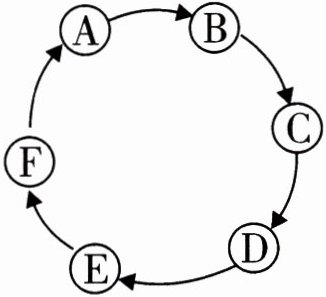 10. 6 个小朋友围在一起做“传花”游戏,从 A 开始按箭头方向向下一个人传花。传花时按顺序报数,当报到 50 时,花在谁手上?