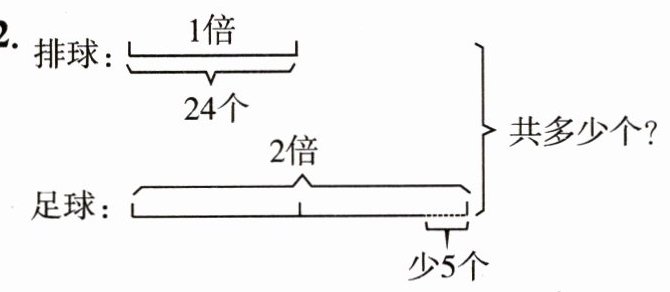 2. $24×2 - 5=43$(个) $43+24=67$(个)