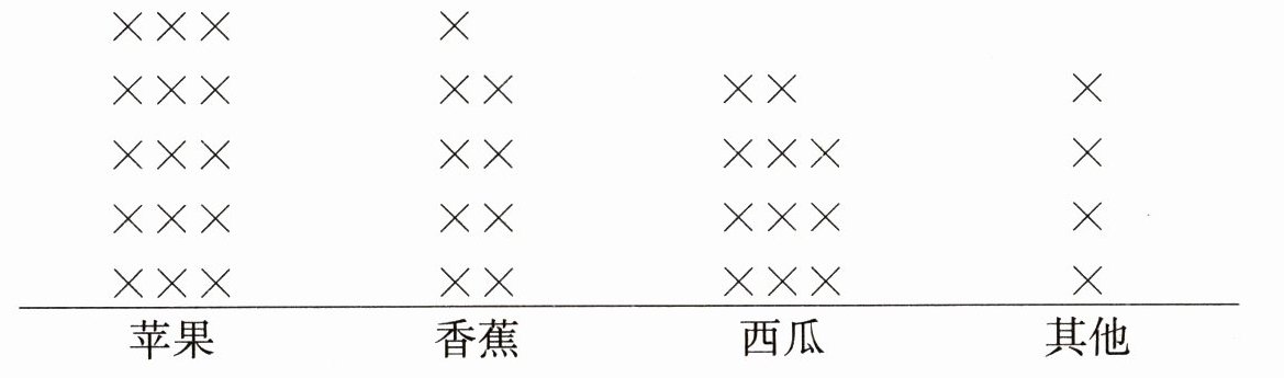 二、下面是老师调查三(1)班同学最喜欢的水果的记录。(×代表 1 人)