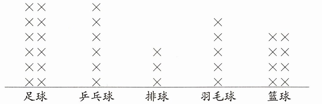 一、下面是根据三(1)班同学最喜欢的球类运动画的图。(×代表 1 人)