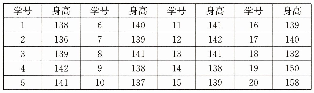 身高最高的是$20$号同学,身高是$158$厘米;身高最矮的是$18$号同学,身高是$132$厘米。