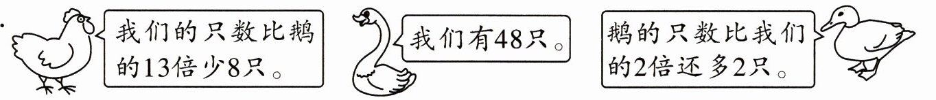(只)(3)鹅的只数是鸡的只数的$\frac{()}{()}$,鸭的只数是鹅的只数的$\frac{()}{()}$。