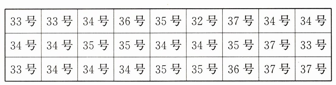 1. 下面是三(2)班部分学生穿鞋的尺码情况。