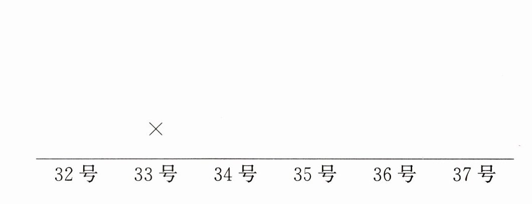 在统计图中,$32$号对应$1$个$×$,$33$号对应$4$个$×$,$34$号对应$10$个$×$,$35$号对应$6$个$×$,$36$号对应$2$个$×$,$37$号对应$4$个$×$(由于无法直接绘制图形,你可根据上述数量在给定的统计图中补充$×$)。