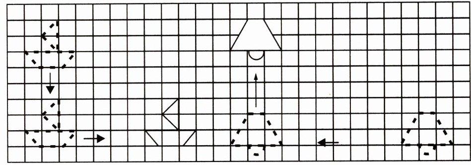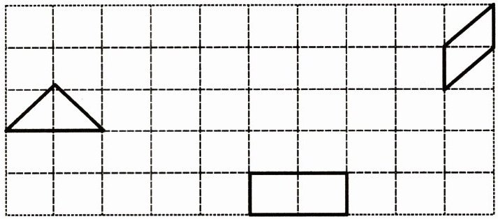 3. 把下图中长方形向上平移 2 格;三角形向右平移 3 格;平行四边形向左平移 5 格。分别画出来。
