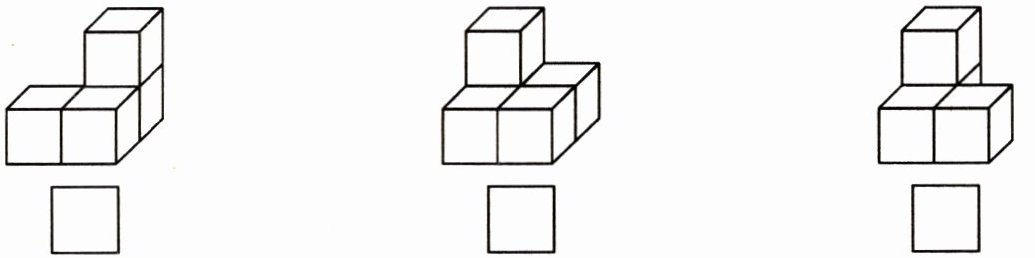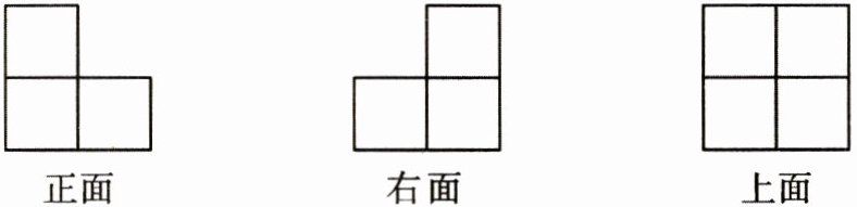 例 小红用同样大小的正方体拼搭成了一个形体,小明从正面、右面和上面看,分别是以下图形。