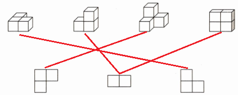 2. 下面组合图形从上面看到的分别是什么形状?请连一连。