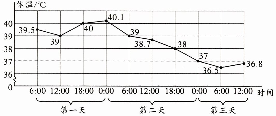 (2)张大爷高烧时体温最高达到了(