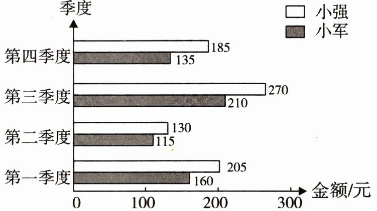 )。(3)小强家和小军家哪个季度的电费最高? 你认为该季度电费支出高的原因是什么?
