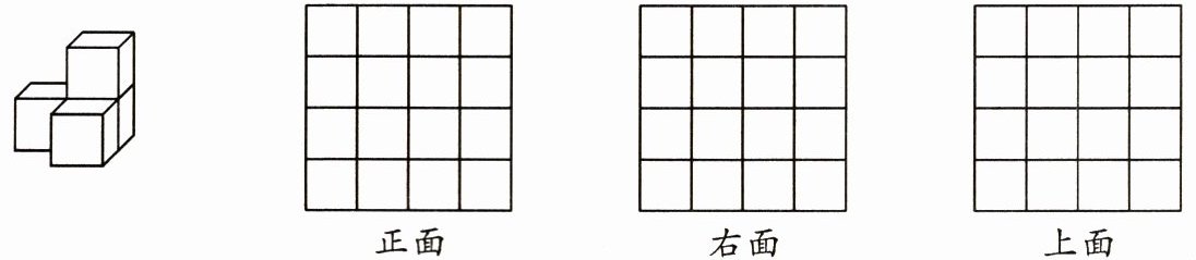 2. 画出下面立体图形从正面、右面和上面看到的形状。
