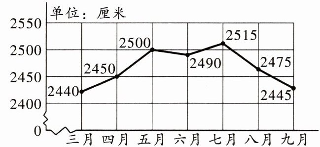 (3)$(2440 + 2450 + 2500 + 2490 + 2515 + 2475 + 2445)÷7 ≈ 2474$(厘米)