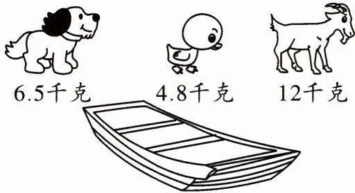 $12 + 6.5 + 4.8 = 23.3$(千克) 23.3 千克>22 千克 这些小动物不能同时乘小船过河。