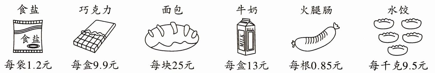 (2)买 5 根火腿肠和 2 千克水饺需要多少元?