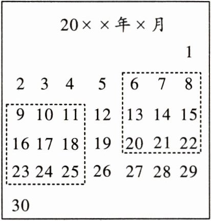 (2)方框中 9 个数之和是中间的数的 9 倍。