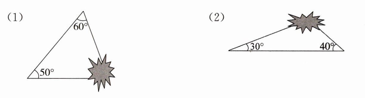(2) $180^{\circ} - 40^{\circ} - 30^{\circ} = 110^{\circ}$ 因为这个三角形一个内角是钝角,所以它是一个钝角三角形。