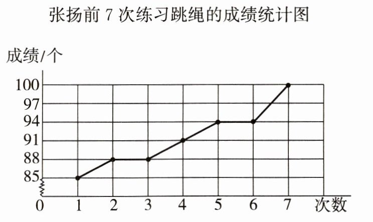 3. 下面是张扬前 7 次练习跳绳的成绩统计图,请你根据统计图解决问题。