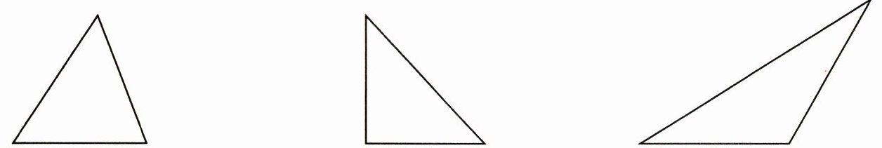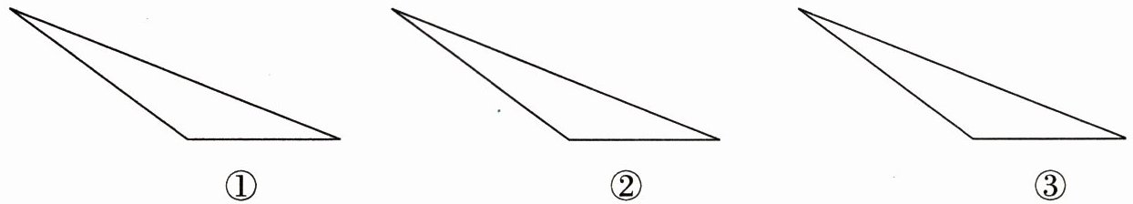 2. 分别画出下面每个三角形中的其中一条高,并标出相应的底。