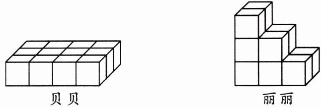 (3)右面是贝贝和丽丽用上面的正方体搭的立体图形。