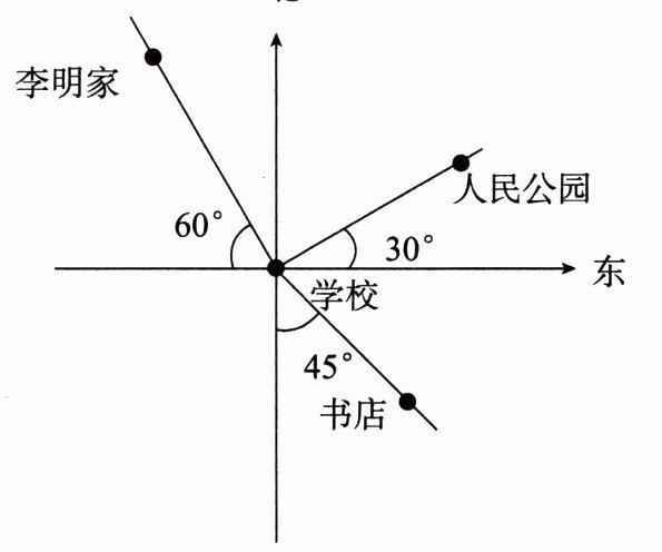 )°的方向上。(3)李明家在学校的(