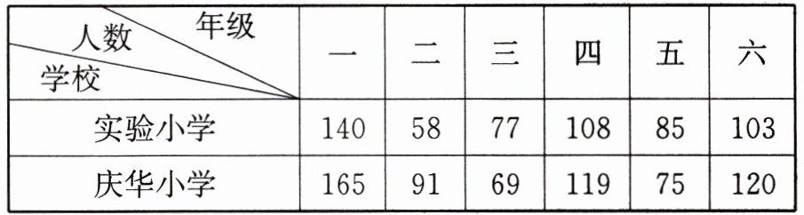 2. 下面是实验小学和庆华小学一至六年级各年级人数情况统计表,用(