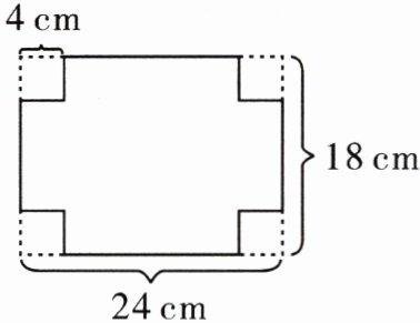 2. 如图,一块长 24 cm,宽 18 cm 的长方形铁板,在四个角上各剪去边长为 4 cm 的正方形,将它焊成一个无盖的盒子。这个盒子的表面积是