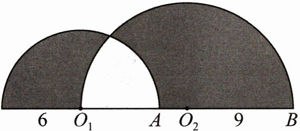 例 将两个半径为6cm、9cm的半圆如图放置,求阴影部分的周长。