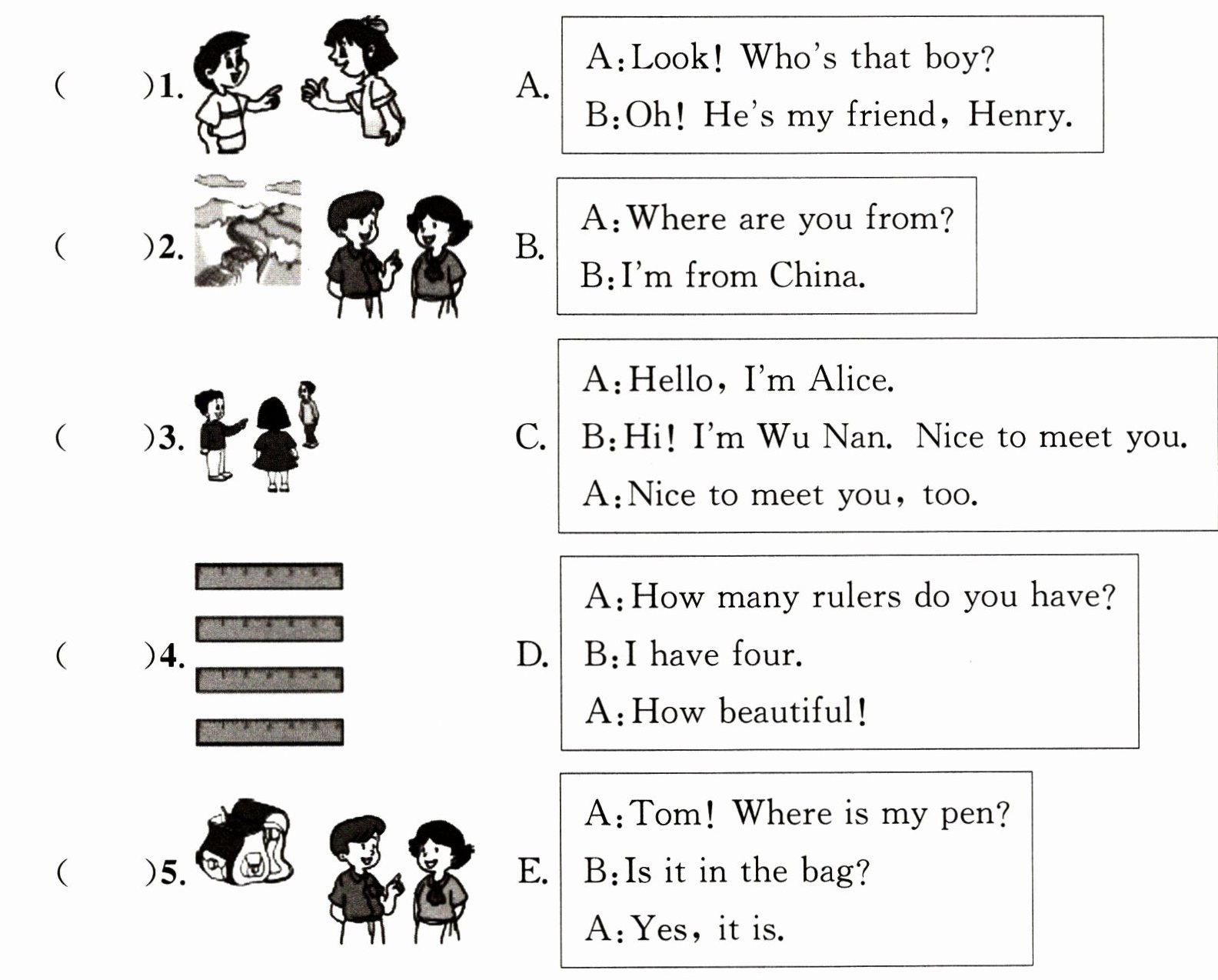 1. D 2. A 3. C 4. E 5. B