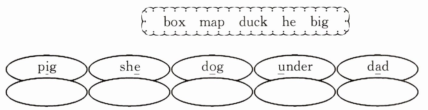 一、根据单词中的划线字母的发音在方框中为下列单词找朋友。