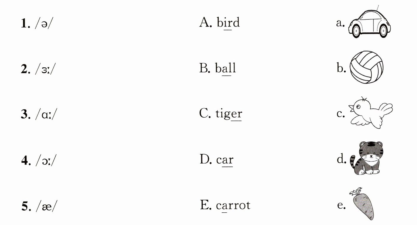 5—E—e carrot胡萝卜,其发音为/'kærət/。