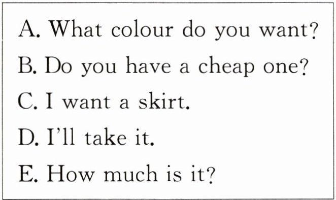 )Oh! No,thank you. That's expensive.( 1 )Can I help you?